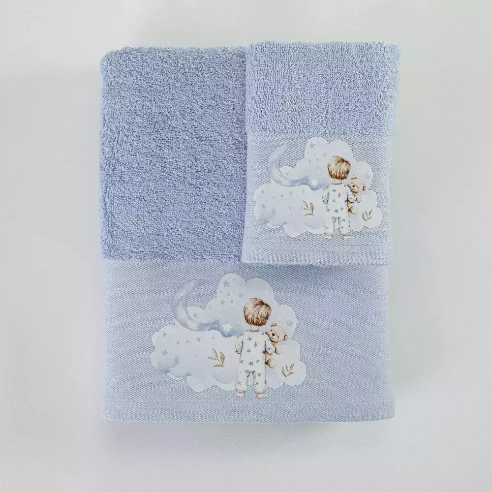 Σετ πετσέτες 2 τεμαχίων, μπάνιου και χειρός, από ύφασμα φροτέ πενιέ, 100% βαμβακερό