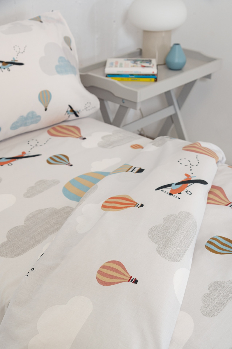 Σετ μονό σεντόνι 3 τεμαχίων, για το παιδικό κρεβάτι από την εταιρεία Βιοκαρπέτ. Είναι κατασκευασμένο από βαμβακερό ύφασμα που το καθιστά ευχάριστο στην επαφή.