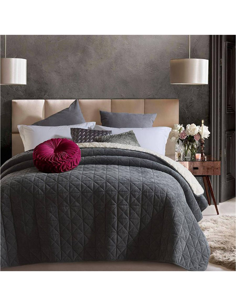 Πάπλωμα βελουτέ κοτλέ σε γκρι χρώμα με γούνα λευκή εσωτερικά Διαστάσεις: 220×240